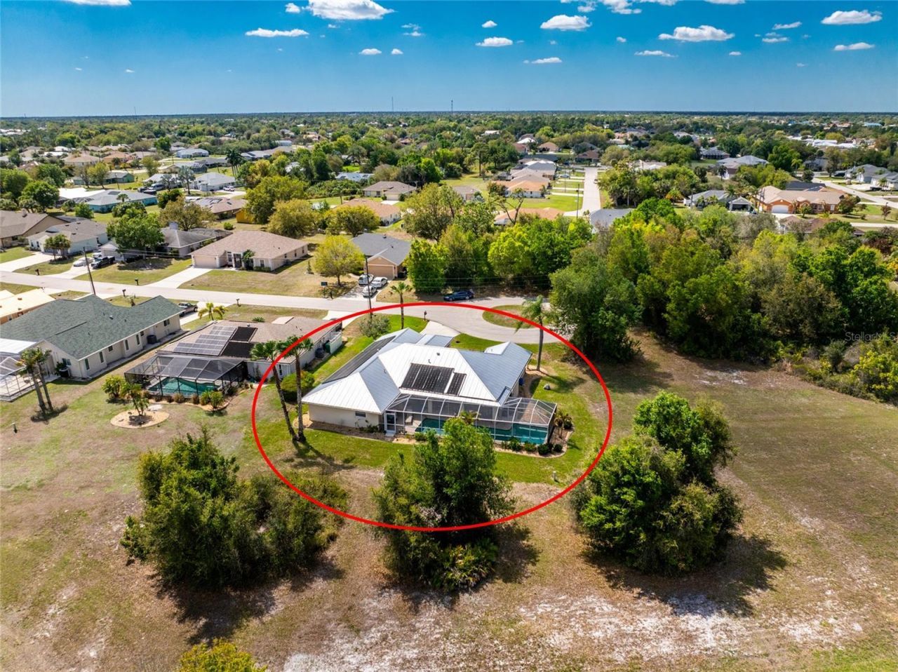 Located in the highly desirable, deed-restricted community of Deep Creek, this beautifully maintained home is tucked away at the end of a quiet cul-de-sac, offering both privacy and peace of mind. Enjoy the benefits of city water and sewer, along with the added advantage of being located outside of a flood zone. Inside, a split floor plan provides ideal separation for guests, while the centrally located kitchen is perfectly positioned for entertaining. The kitchen features granite countertops, a tiled backsplash, stainless steel appliances, and a breakfast bar, all complemented by ample counter space. Lower cabinets are equipped with convenient pull-out drawers for easy access, and a passthrough window to the lanai enhances indoor-outdoor living and makes entertaining a breeze. This home is loaded with upgrades including hurricane impact windows, a durable metal roof, and paid-off solar panels for energy efficiency. Plantation shutters add a touch of elegance throughout, and the home is being offered partially furnished for added convenience. The indoor laundry room adds everyday practicality. Step outside to your own private backyard oasis where the sun rises in the back, creating the perfect start to your day. Wake up at the crack of dawn with your cup of coffee as the sun comes up, then jump in and swim a few laps in your private pool. Surrounded by mature landscaping, decorative rock and curbing, and a fully irrigated yard fed by a private well, the setting is both lush and low maintenance. Conveniently located near I-75 at Exit 170, this home offers easy access for commuting while still enjoying a quiet neighborhood setting. Just a short 20-minute drive to Punta Gorda Airport, and close to shopping, restaurants, and medical facilities, making everyday living both easy and convenient.